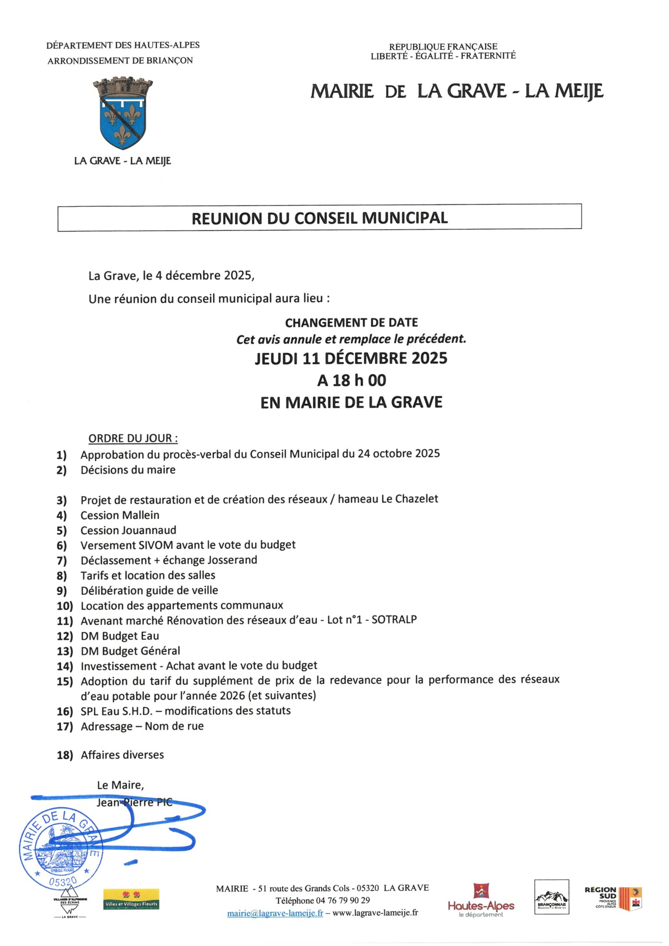 RÉUNION PUBLIQUE – PROJET DE MICROCENTRALE HYDROÉLECTRIQUE Torrent de l’Orcière – LA GRAVE